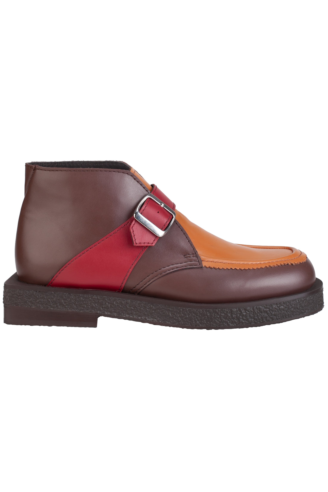Description: The Gangan Boot is made from colourful leather panels, and features chrome metal hardware....