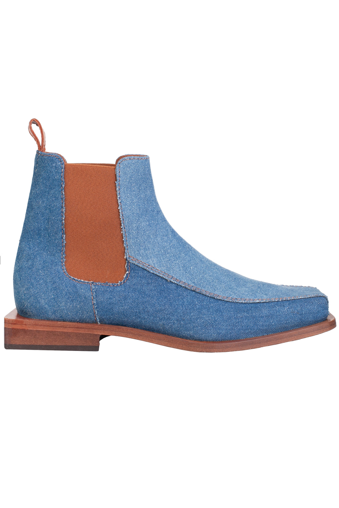 Description: The Tabali boot is given a fresh take and made from tonal blue denim...