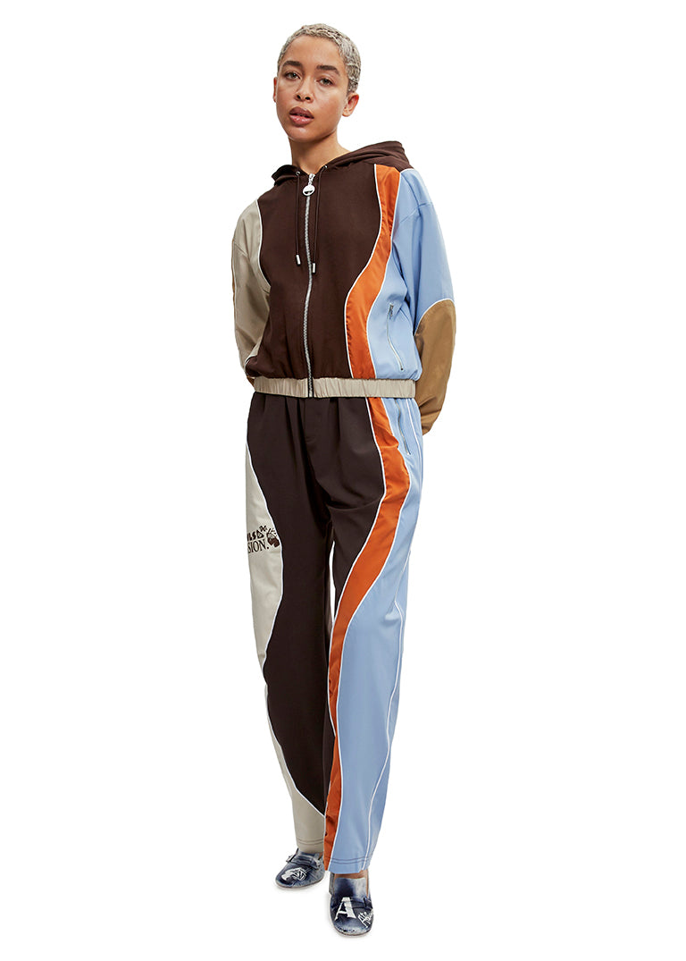 Description: Crafted from upcycled Italian fabric, the patchwork, drawstring Katrina Hoodie features zip-up pockets, ecru...
