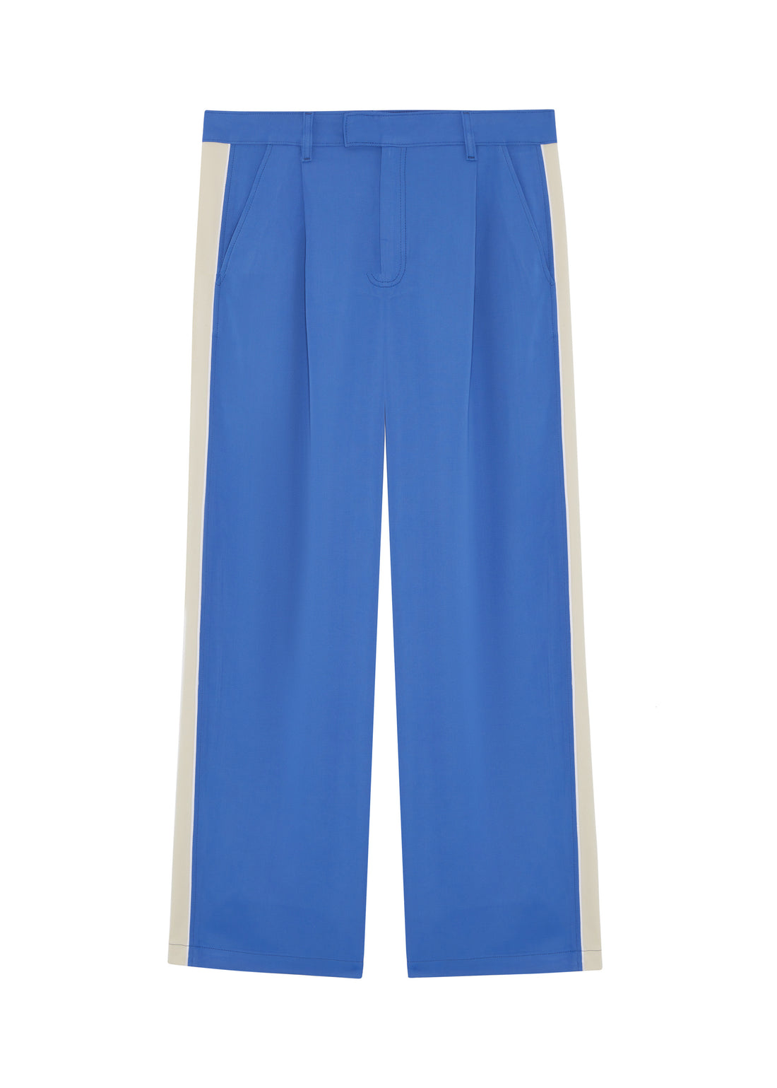 Description: The Mobb trousers are reimagined in a light blue and cream colour. Made with...