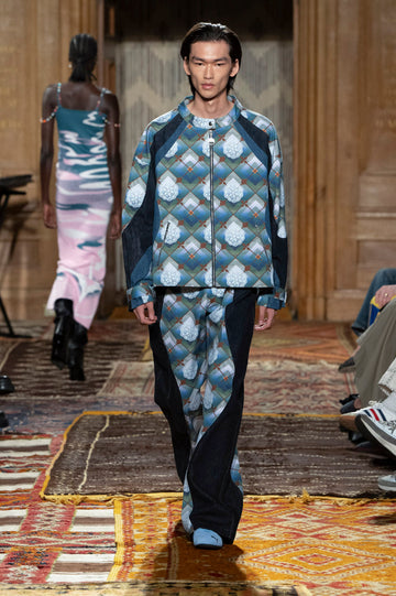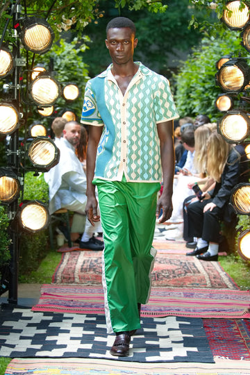 Combining distinctive codes and signatures from each designer, from Ahluwalia’s seaming and panelling techniques and Paul Smith’s distinctive check fabrics.