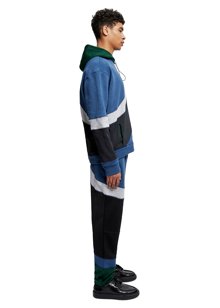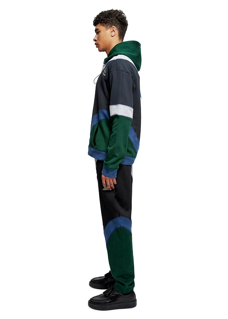 The patchwork Babu Track Pants are crafted from both recycled brushed-back cotton sweat-shirting and upcycled vintage garments; therefore, making each track pant slightly unique. The style details include piping, a drawstring waistband, Ahluwalia hardware and elasticated hems.