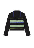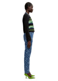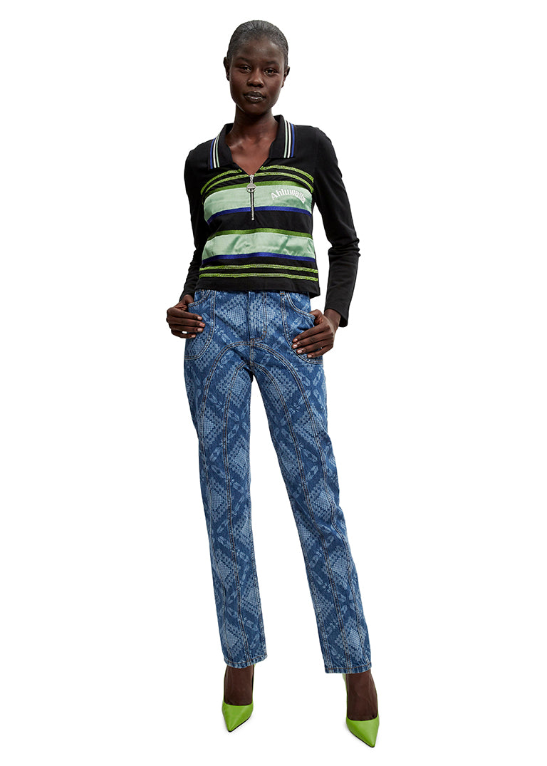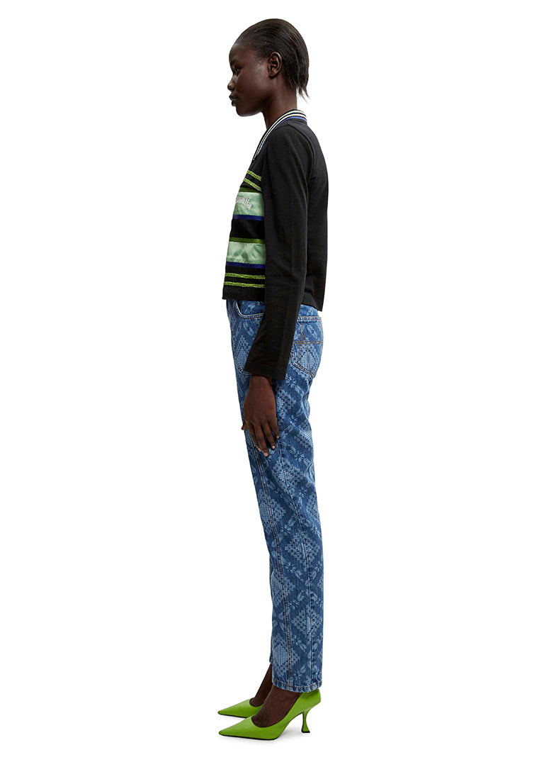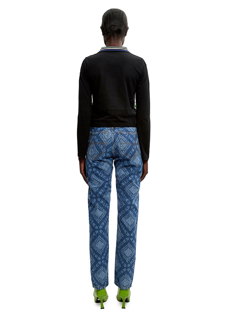 Cut from 100% organic cotton pique, the Buke long sleeve polo utilises an artisanal chain stitching technique to accent the pistachio applique panels in bright shades of blue and green. The polo features a half zip-up at the neck, beading details and embroidery of the Ahluwalia emblem.