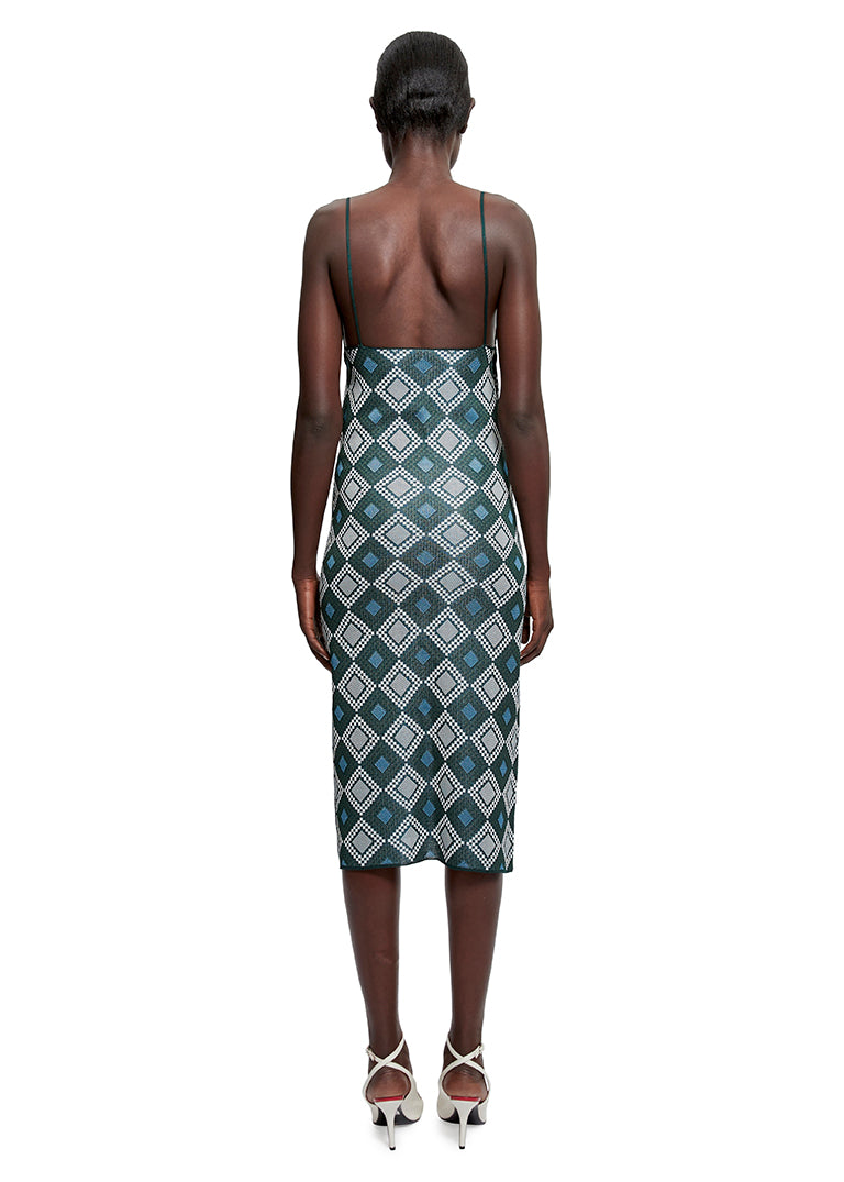 Knitted from sporty viscose in a custom Ahluwalia jacquard pattern, the Ojewale dress is characterised by a defined square neckline and tonal spaghetti straps.