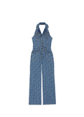 Taking a cue from the iconic 70’s era, the Priya halterneck jumpsuit is cut from 100% organic cotton with the all-over motif ‘A’ laser etching, branded hardware, topstitching and a wide leg.