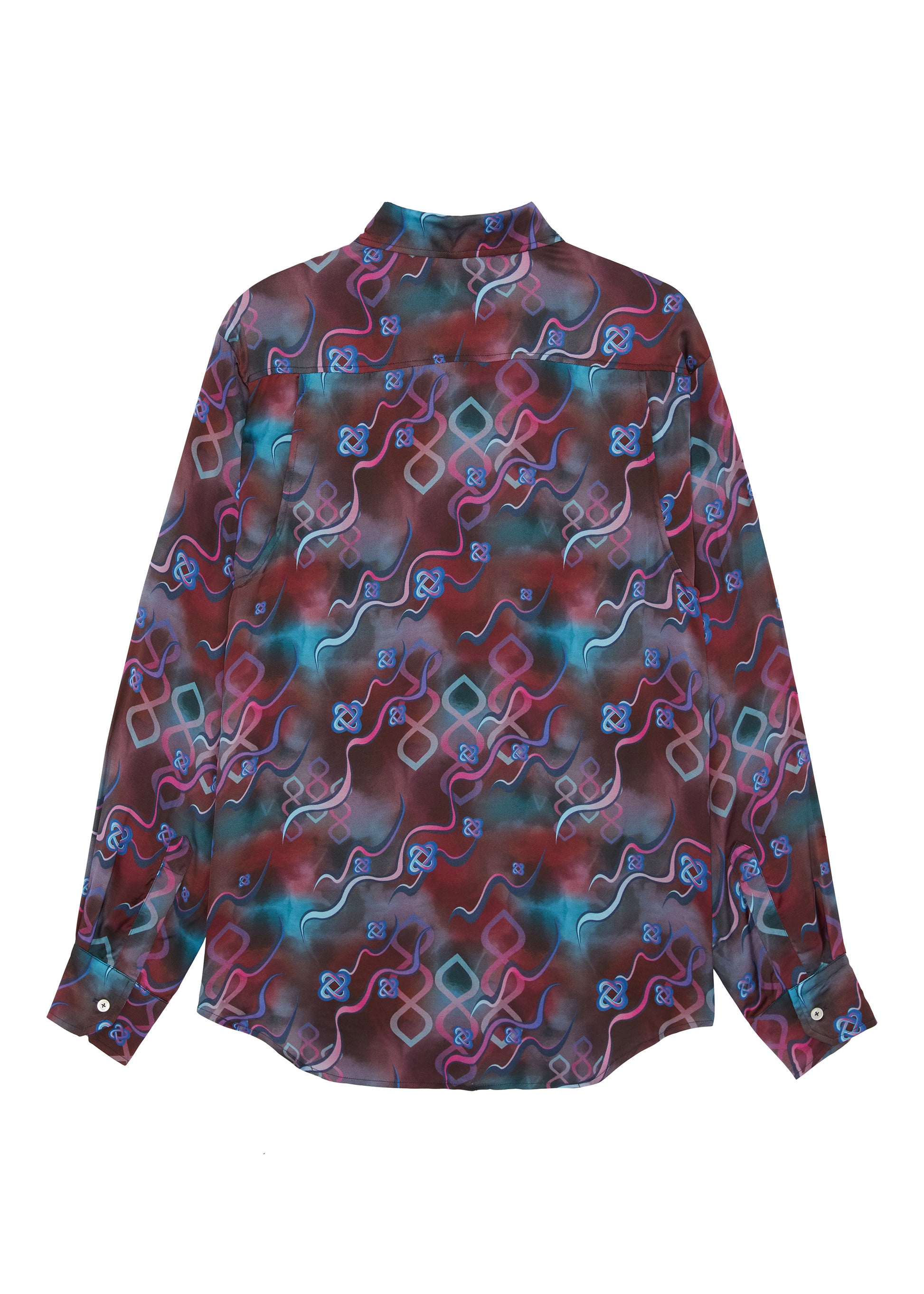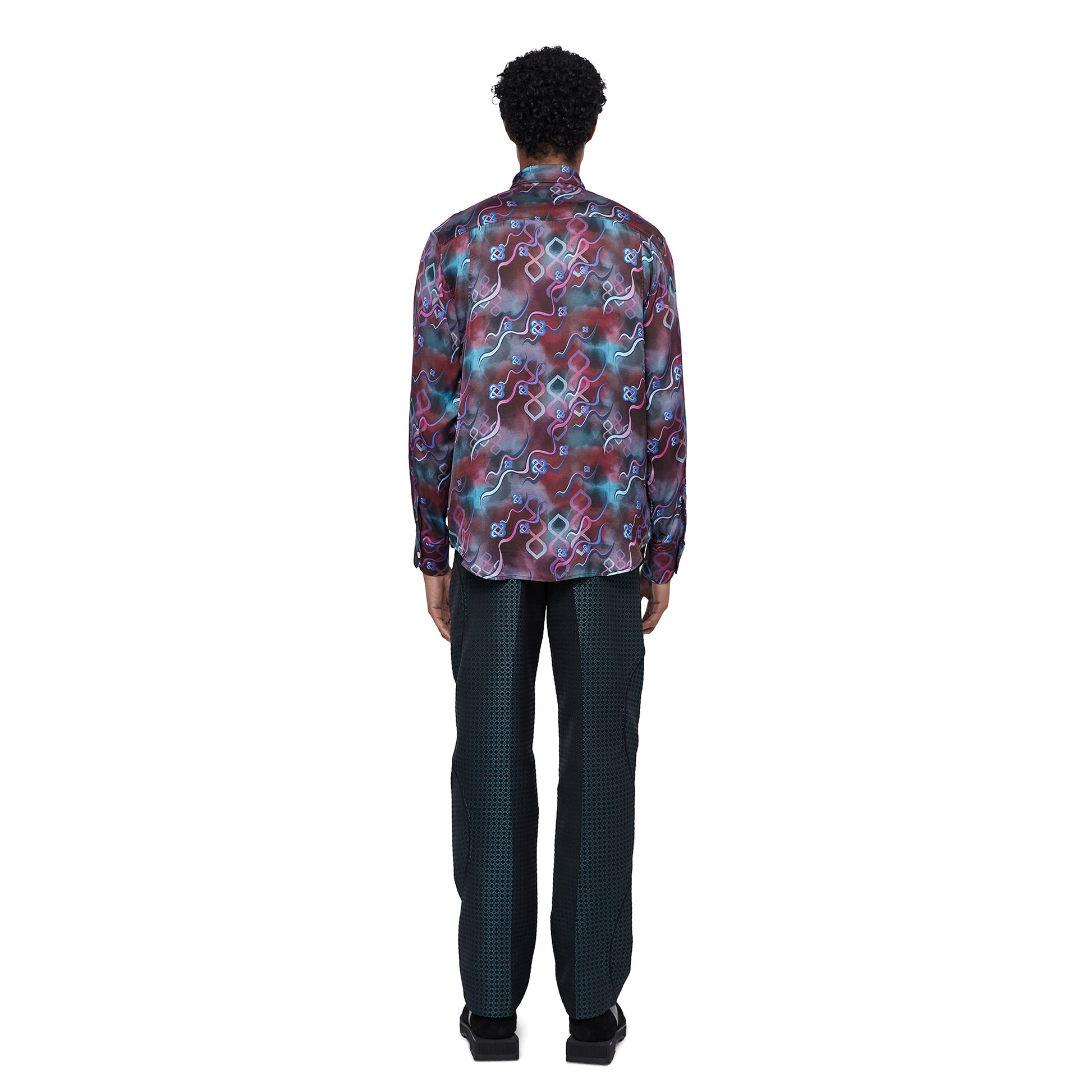 The Anansi fitted shirt reimagines the timeless men's classic with a contemporary flair, presenting this season's all-over print in a blue and pink colourway. Drawing inspiration from the mystical and fluid narratives of storytelling, the print incorporates motifs derived from symbols traditionally found on traditional dresses. The shirt is made from Ecovero viscose fabric.