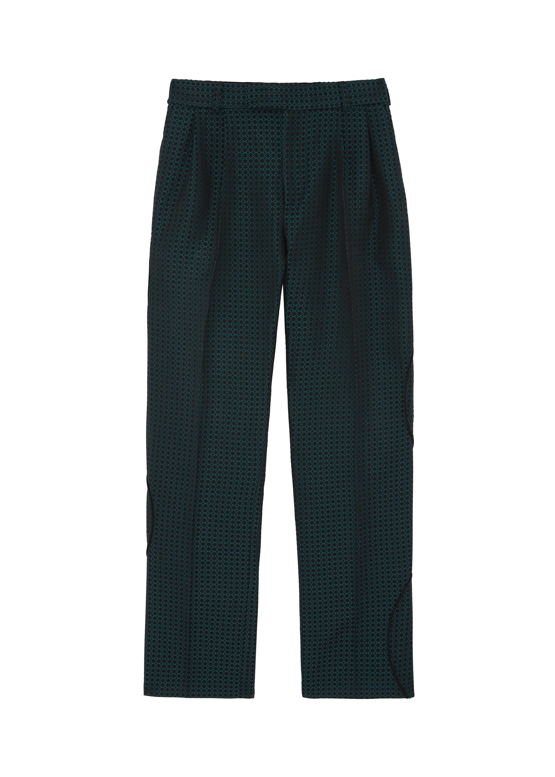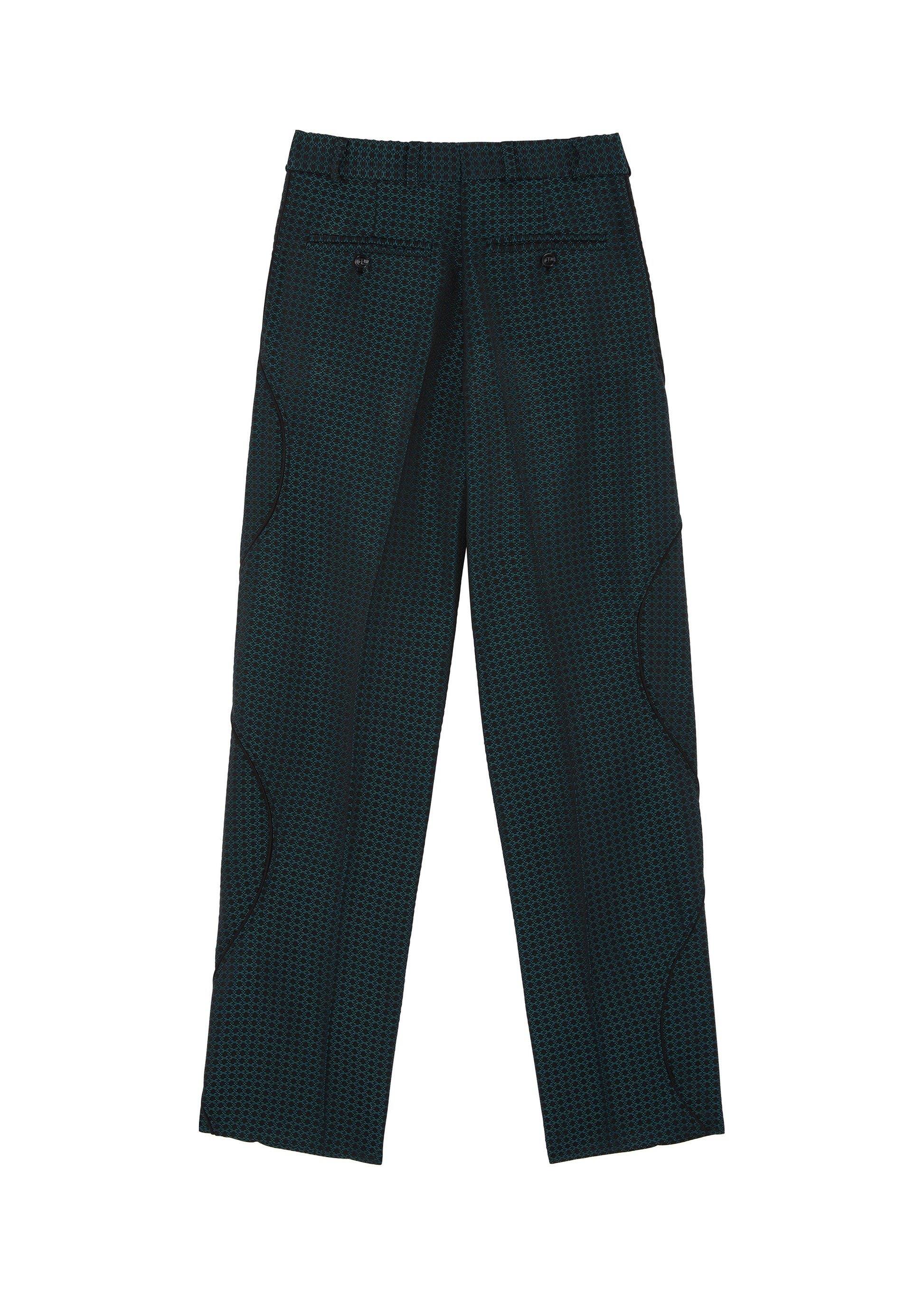 This season, the Kholi tailored trousers are characterised by a refined rounded shape that subtly tapers at the ankle and front pleats at the waistband. Crafted from CFS-certified repurposed textured jacquard, these trousers showcase our distinctive Joy curve along the side seams, accentuated with sleek black piping, merging sustainable craftsmanship with contemporary design.