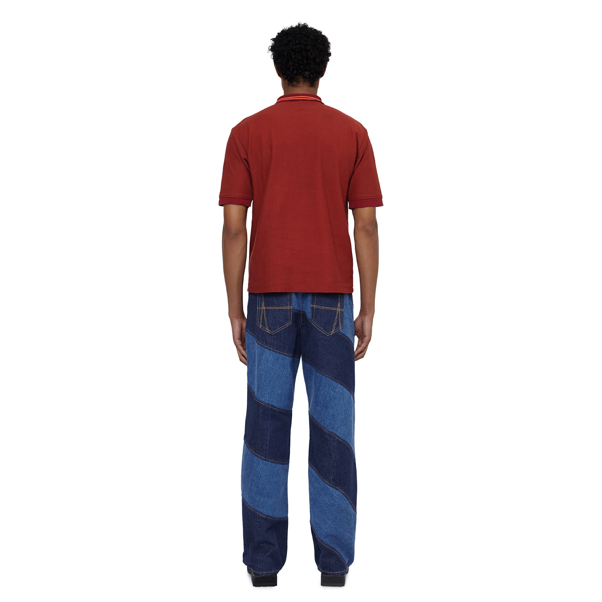 The Olarinde short sleeve polo is made from 100% organic cotton pique. Featuring applique panels made from vintage sports tops, cut into diamonds and finished with a chainstitching detail. This season's all over print is also showcased in the applique panels.