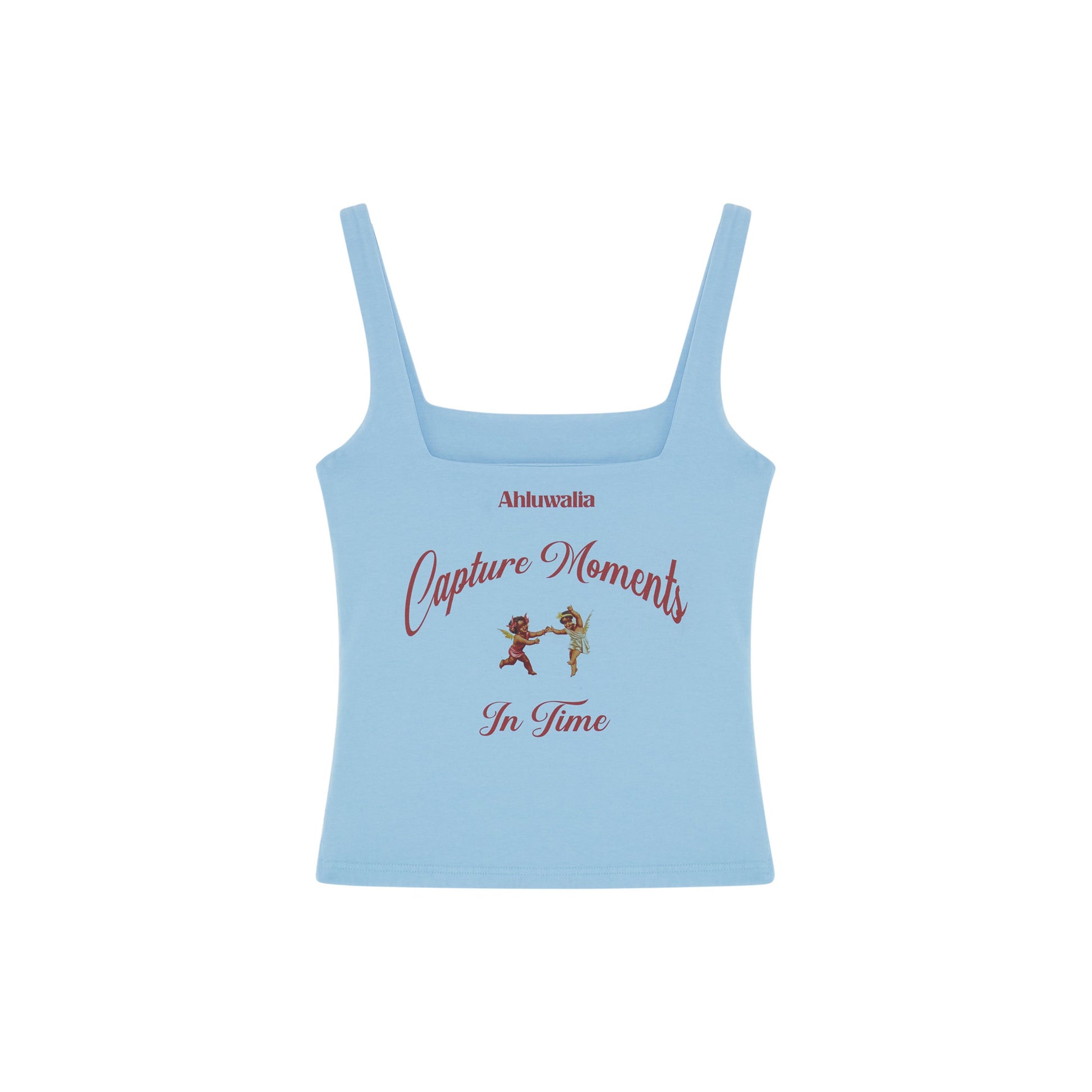 Introducing our new fitted vest, featuring this season’s ‘Capture Moments in Time’ graphic. Decorated with cherubs on the front, it’s made from 100% organic cotton and designed with a square neckline for a sleek silhouette.