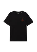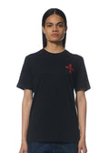 The Autumn Winter '21 Ahluwalia Emblem round neck short sleeved black t-shirt is made from soft, heavyweight organic cotton, and features a graphic of the Afro comb compass, screen printed to the back and the chest.