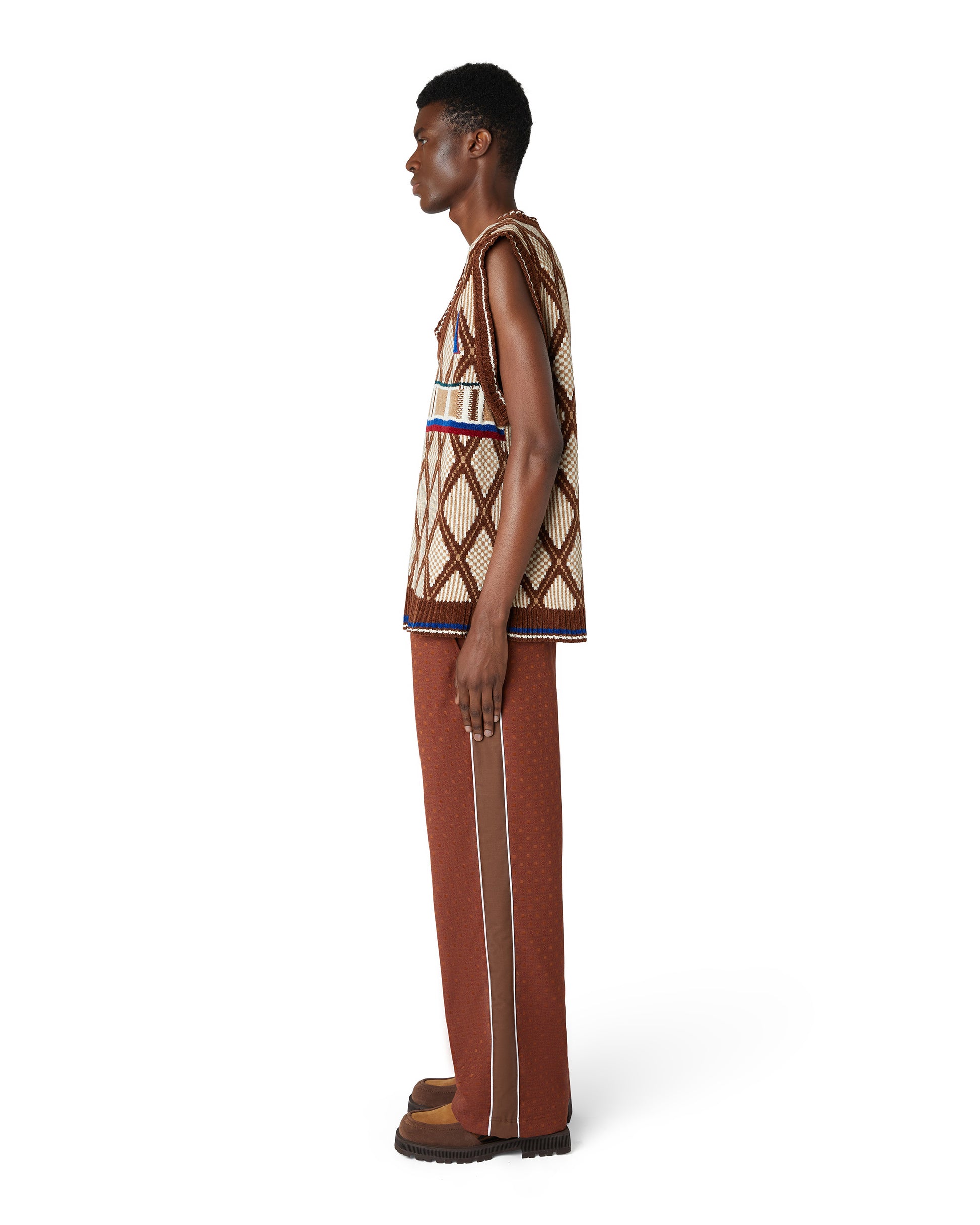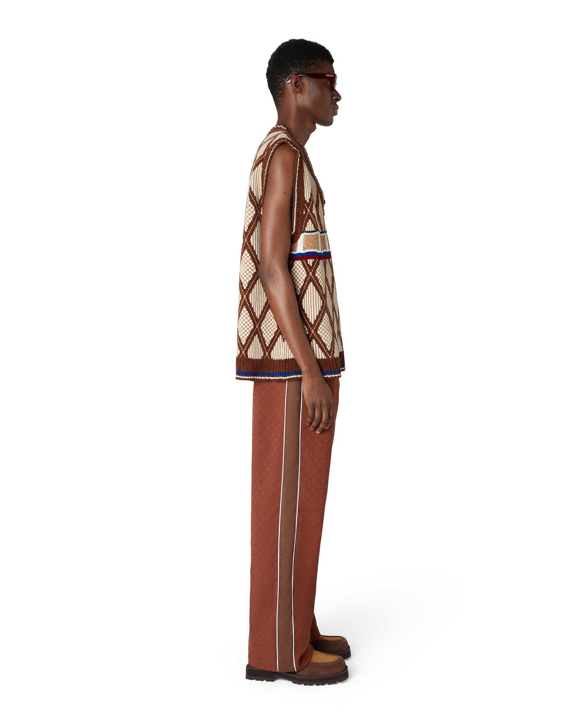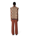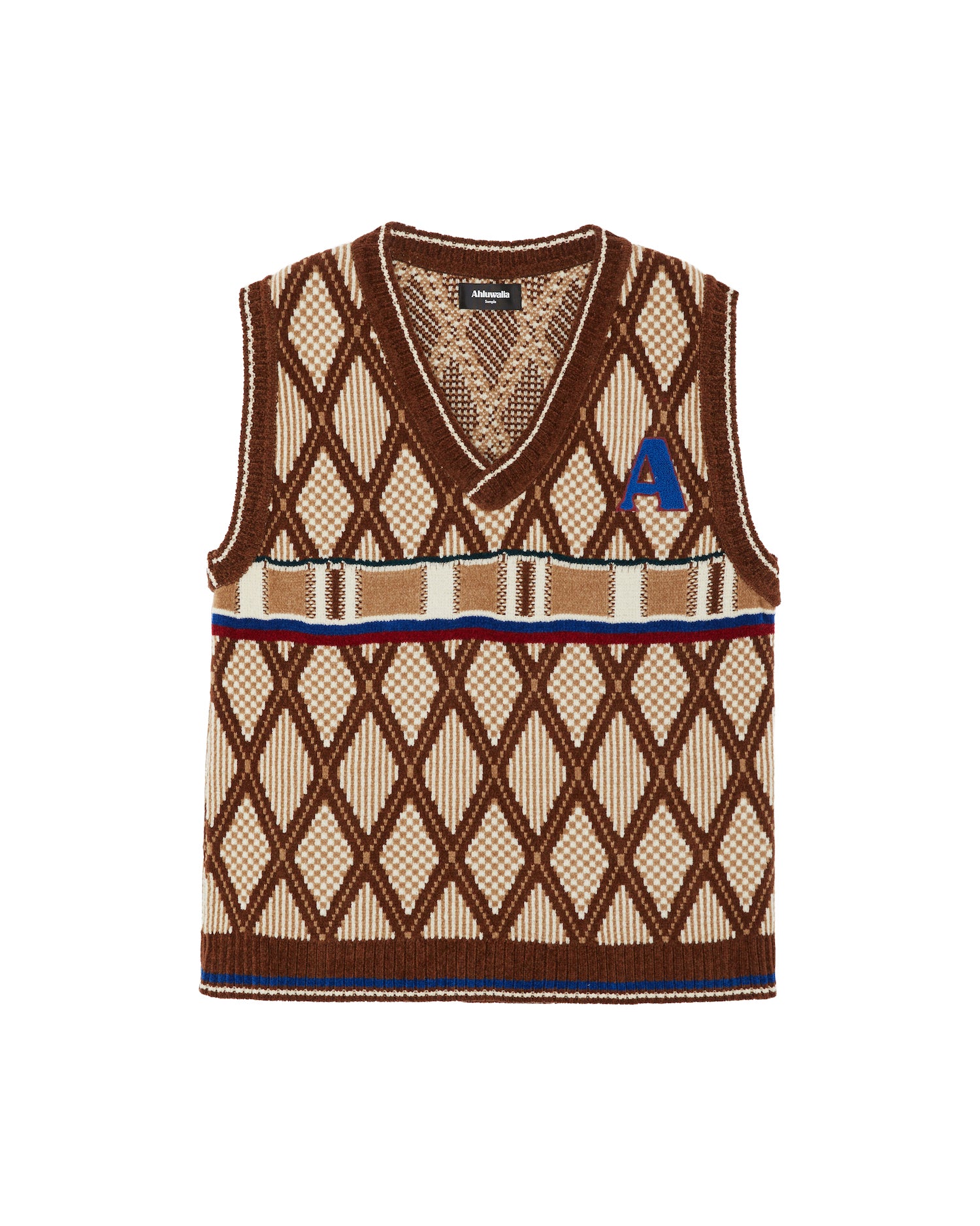 The Kingpin Knitted Vest is made from ethically-sourced cotton and features a diamond print and an 'A' patchwork motif.