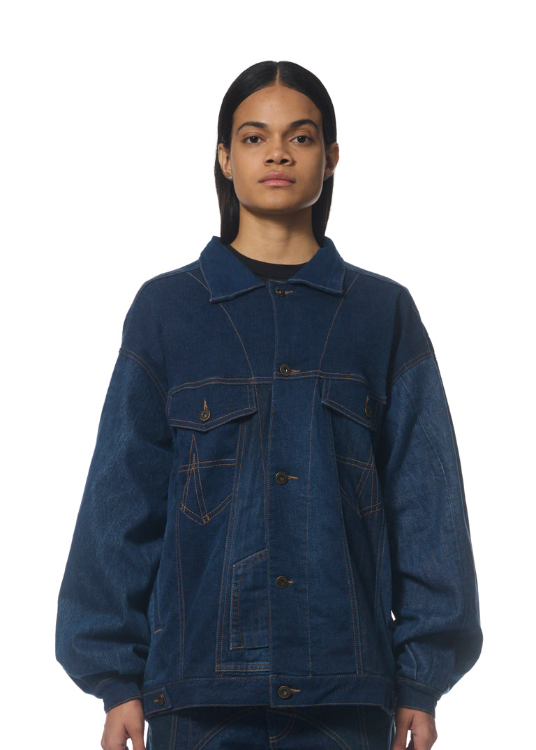 The Autumn Winter '21 Ahluwalia Signature denim jacket features this season's ombre stripe, realised through the use of laser technology. The Signature jacket has an oversized fit and has branded Ahluwalia buttons.