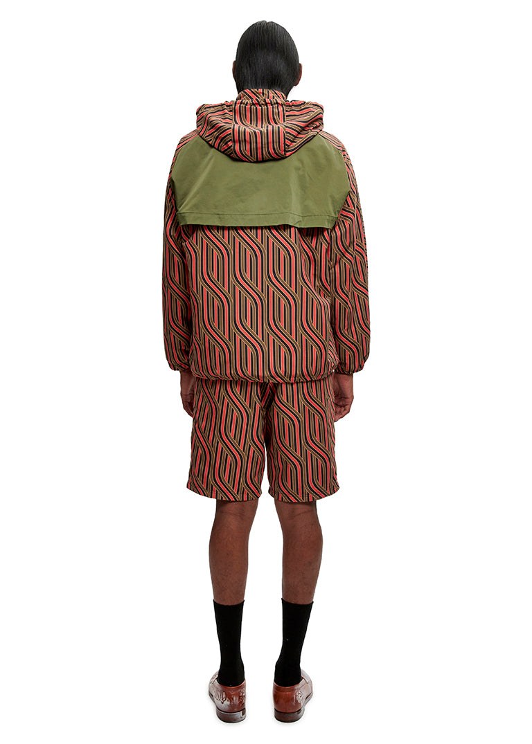 Ahluwalia’s Braid Raincoat is made from fabric weaved using 100% post-consumer plastic waste featuring the SS22 braid print. The Raincoat has a contrast back placket, drawstring hood, elasticated edges and multifunctional pockets.