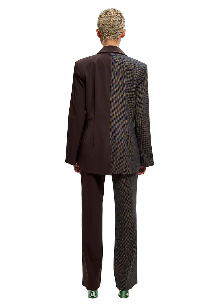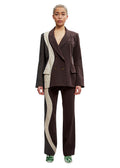 A new shape for SS22 cut from up-cycled Italian fabrics, the Expression Blazer is softly tailored for maximum comfort and wearability. Its contrasting wave panels are finished with a clean line of Ecru piping whilst the Blazer also features a double-breasted button placket and classic three-pocket layout.
