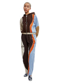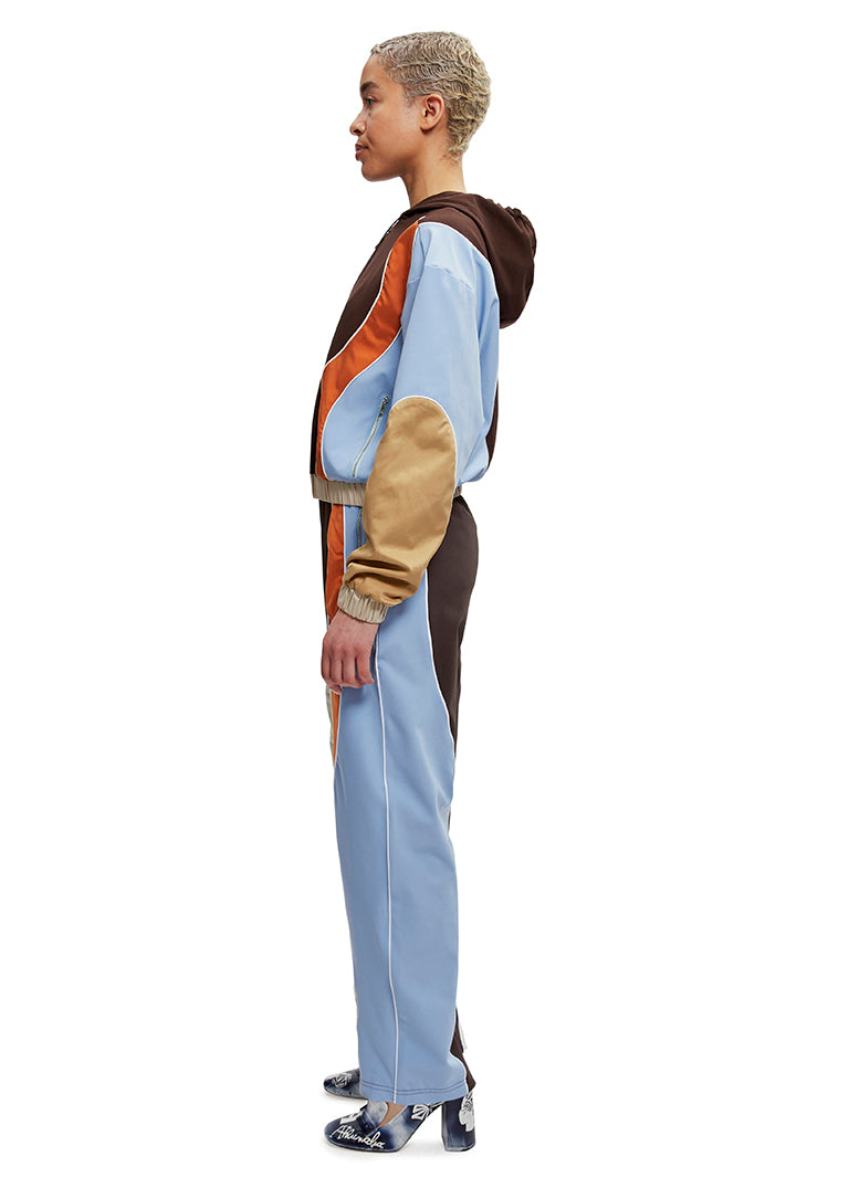 Crafted from upcycled Italian fabric, the patchwork, drawstring Katrina Hoodie features zip-up pockets, ecru piping, elasticated edges and silver hardware.