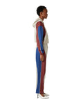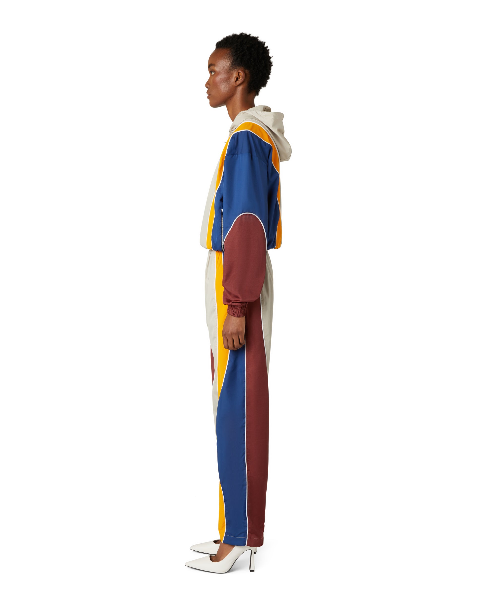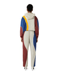 Crafted from repurposed fabric, the patchwork, drawstring Idi Hoodie features zip-up pockets, ecru piping, elasticated edges and silver hardware.