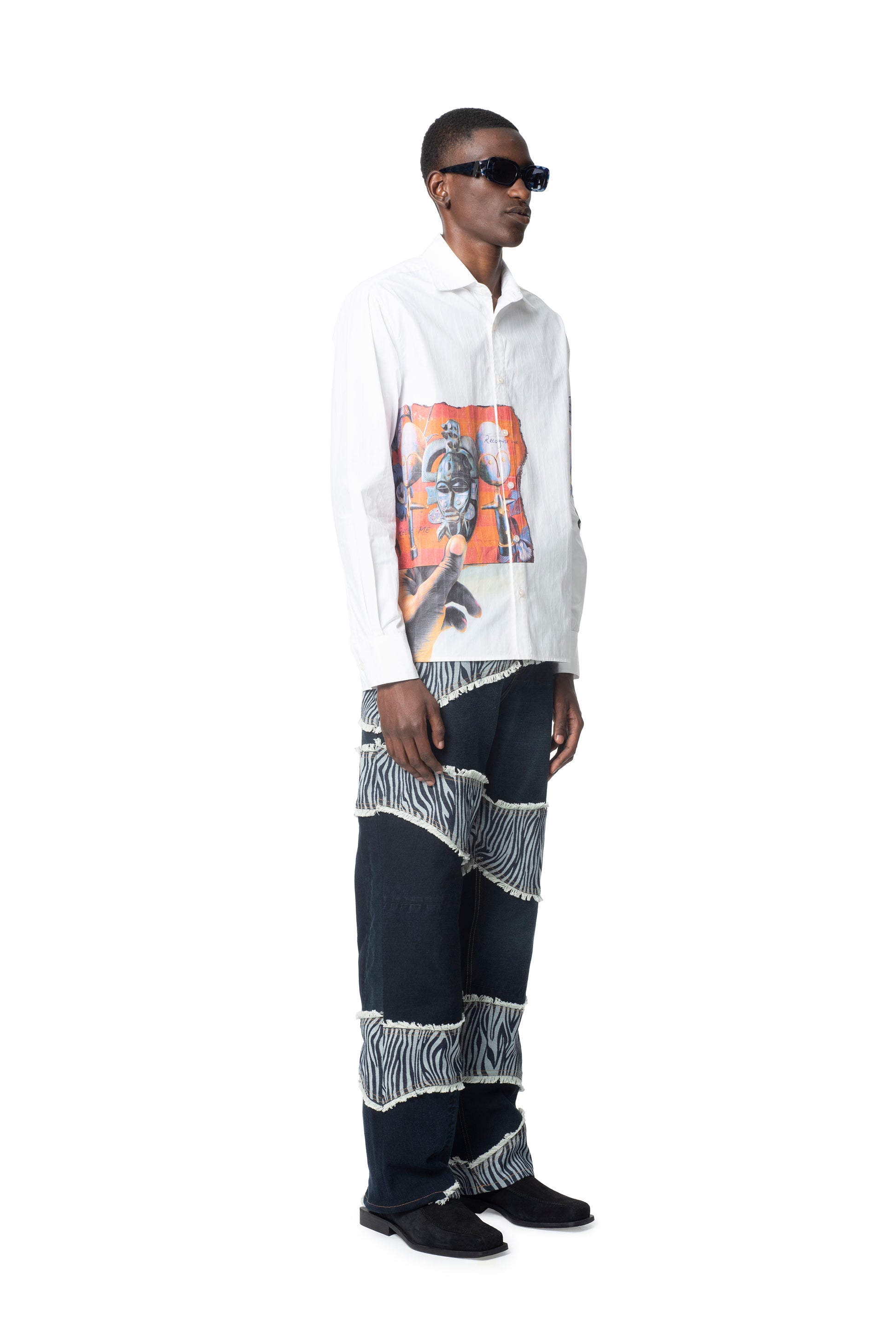 The "regular fit" Shakti Long Sleeved Shirt features a fusion of cut-out elements derived from this season's graphics and themes printed on the shirt. The customised "A" Jacquard shirting fabric used is made from organic cotton.